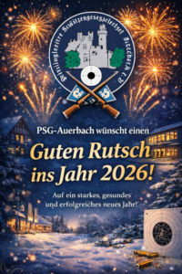 Das Jahr 2025 war für die Privilegierte Schützengesellschaft Auerbach 1570 e.V. ein Jahr voller Aktivitäten, Engagement und gemeinsamer Erlebnisse. Wir blicken auf zahlreiche Termine, Leistungen und gesellschaftliche Höhepunkte zurück, die das Vereinsleben geprägt haben.